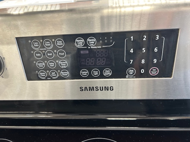 Reconditioned Electric Range, 30″ Exterior Width, 5.7 cu. ft. Capacity, Self Clean, Steam Clean, Convection, 5 Burners (4 Radiant elements, 1 warming zone), Warming Drawer