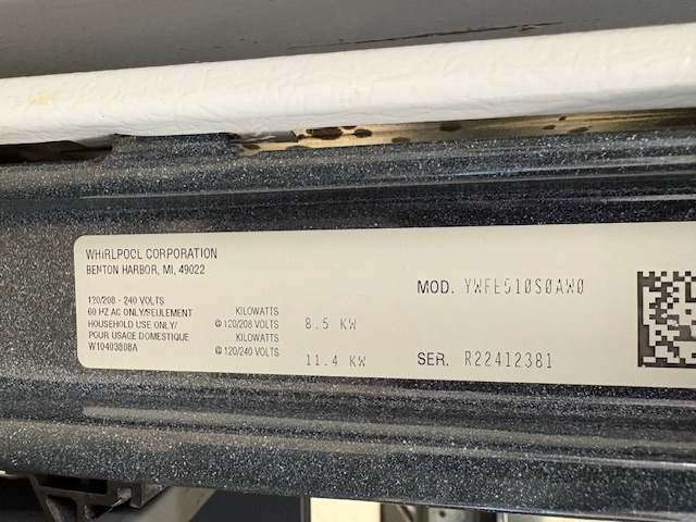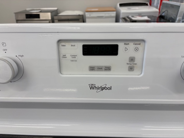 Reconditioned Stove, Electric, white in colour, 30″ Width, Glass Top, Self Clean, 4 Burners, 4.8 cu. ft. Capacity, Storage Drawer, 1 Oven