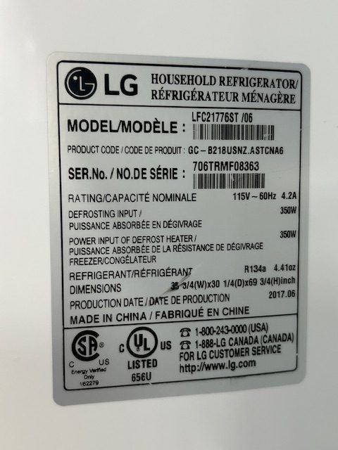 Reconditioned French Door Fridge, 36″ Width, Counter Depth, 20.9 cu. ft. Capacity, Adjustable shelves, Ice maker in the freezer