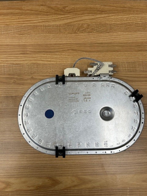 This Dual-size oval radiant element is found under the Glass on glass top stoves. This element can be a small element or combine to make a larger oval element. This element would be for a dual element. 1800/1000W, 240V.