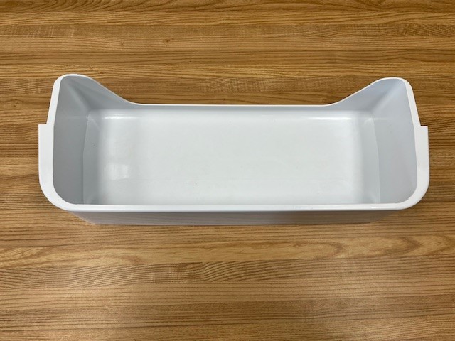 This part is Clear Door Bin. The door bin attaches to the inside of the refrigerator door and typically holds jars and bottles. Found in a 24″ Wide Fridge.