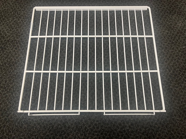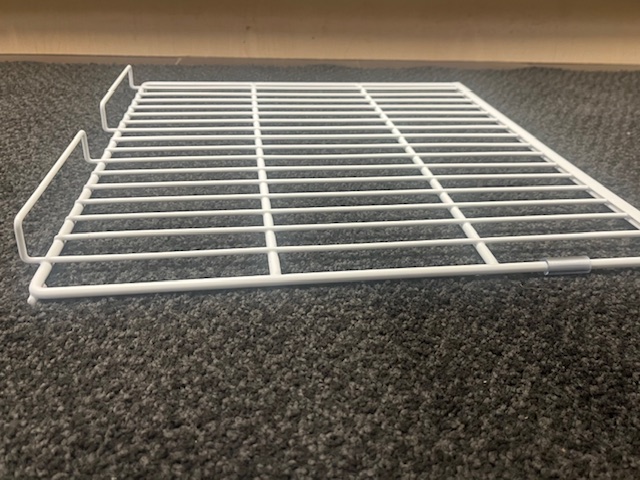 White wire shelf found in the Fresh Food Section of a 24″ Fridge. Shelf placement is adjustable in the Fridge.