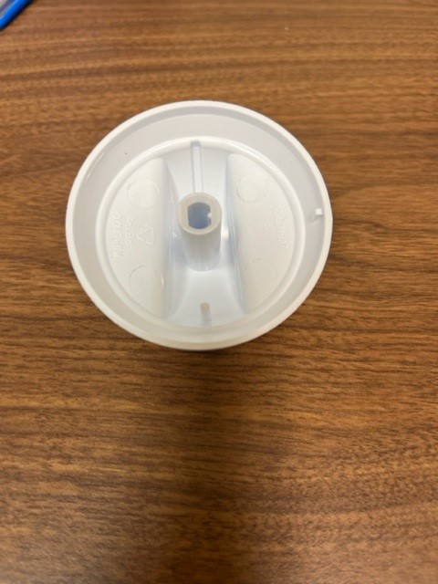 This is a white oven burner knob. with slight grey detail. The burner control knob controls the heat of the surface burner on your range.