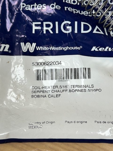 This heating element has 5/16″ terminal ends. The heating element coil generates the heat for drying the clothes. 58″ in length