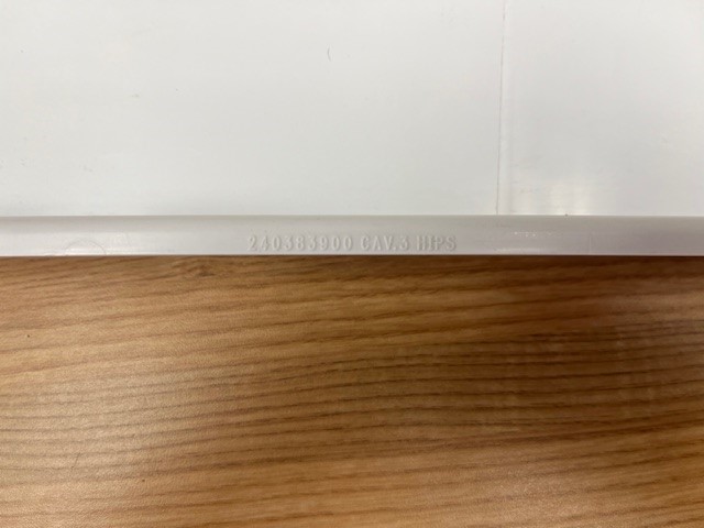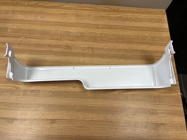 Frigidaire genuine refrigerator Door Shelf Bar. This door shelf bar is white in colour. The door shelf trim snaps into place on the door to hold items on the door shelf. This door bar is normally found in the Fridge section of a 16-17 cu.ft. fridge, in the Center bar position on the door.
