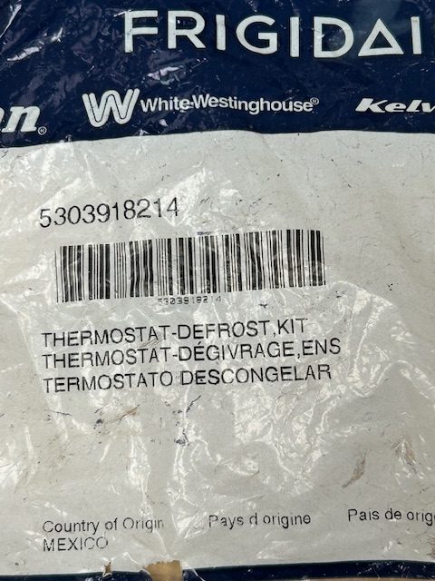 The defrost thermostat protects the evaporator from overheating during the defrost cycle. This defrost thermostat kit includes the clip, leads, and heat shrink.