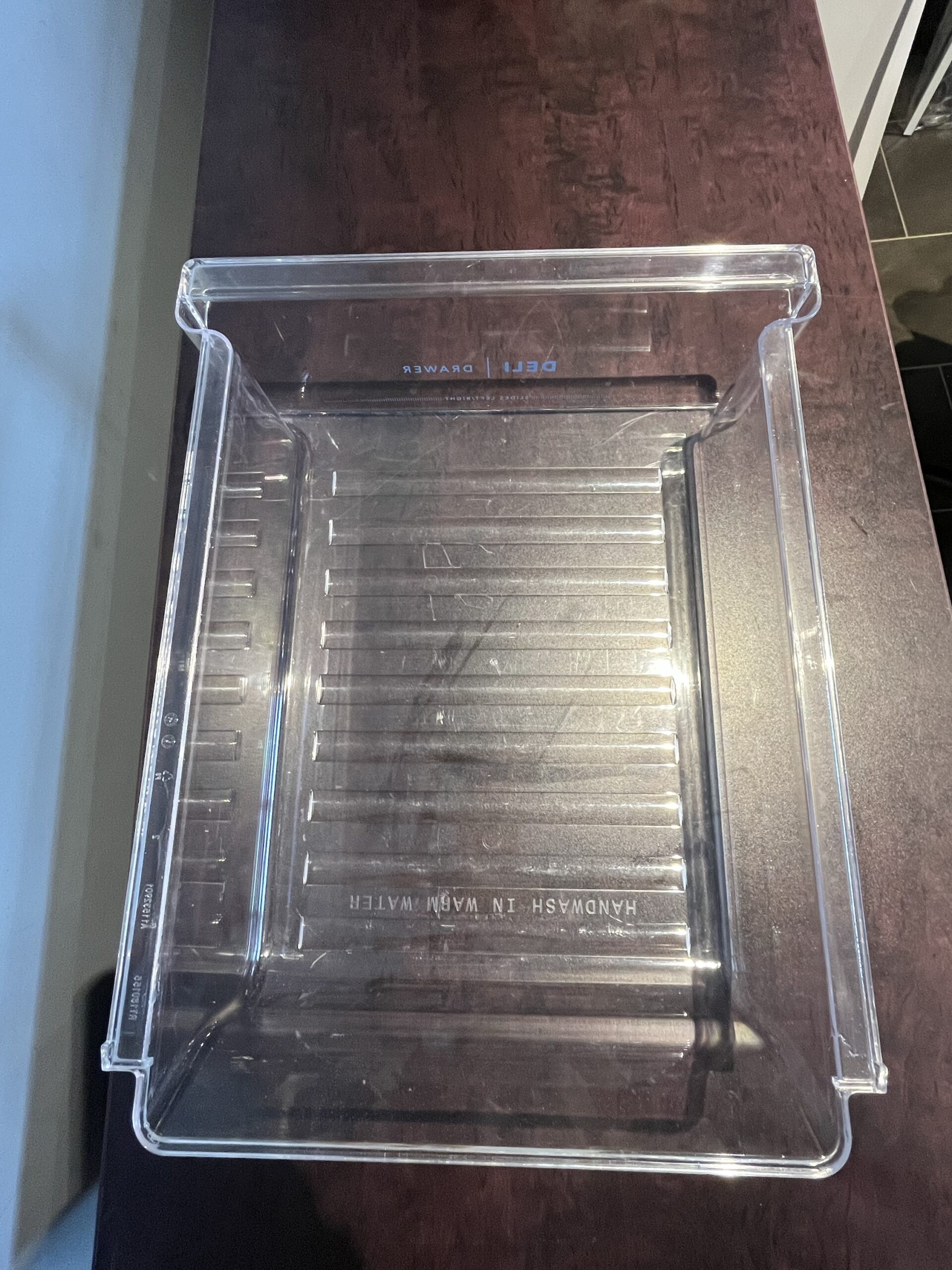 This is deli drawer is for refrigerators. Deli drawer holds meat, vegetables and snacks in the fresh food compartment of the refrigerator. This deli Drawer is found in an 18 cuft (30″ wide) Fridge.
