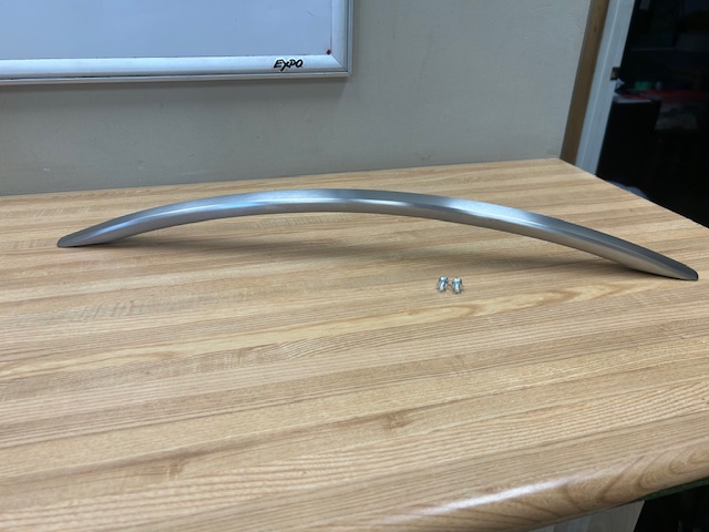 This is a Metal Handle, Stainless/Grey in colour which attaches to the Freezer door. Handle include 1 set screw (P# 218755402) and 2 Handle screws (P#5304519063).
