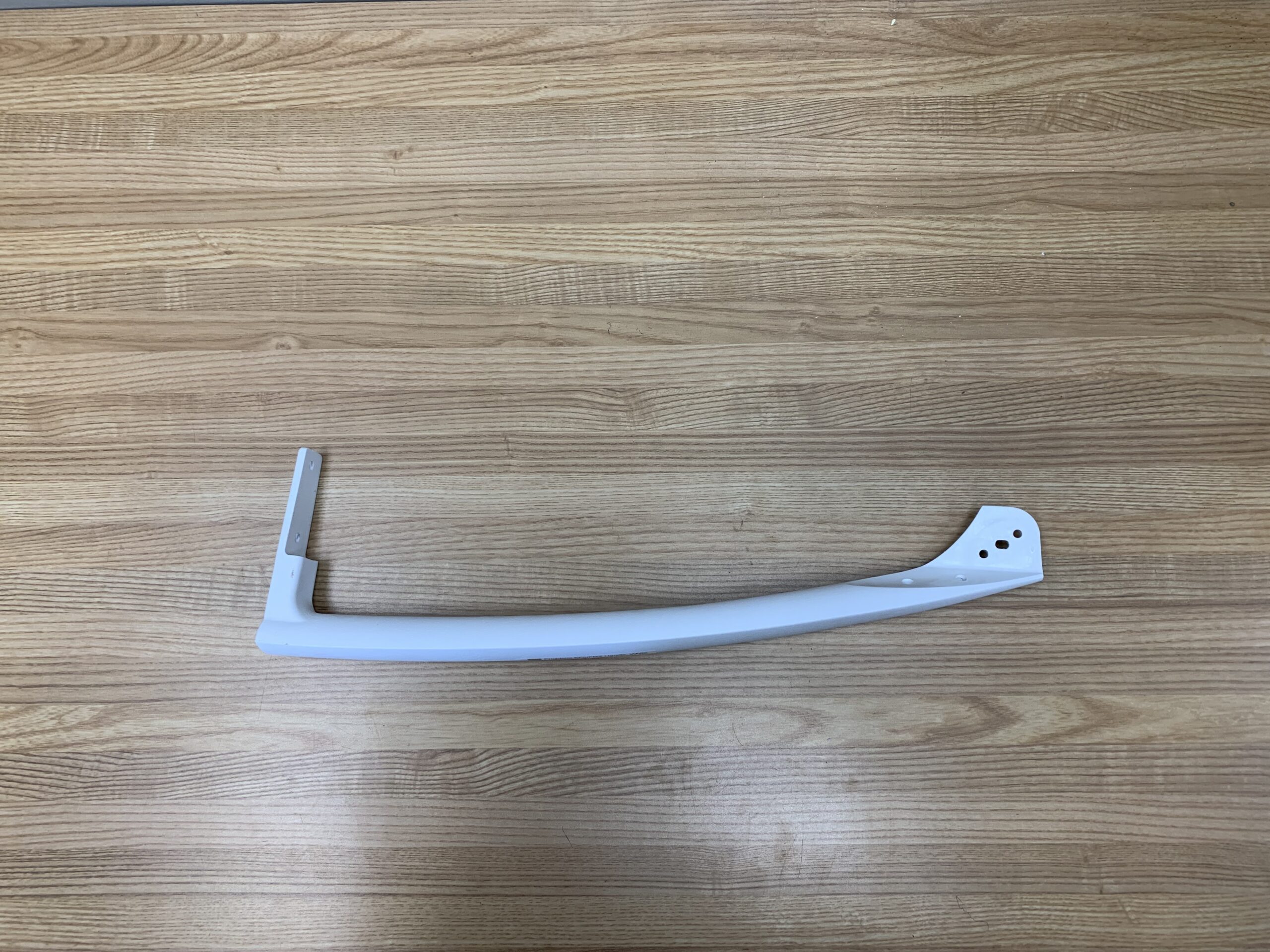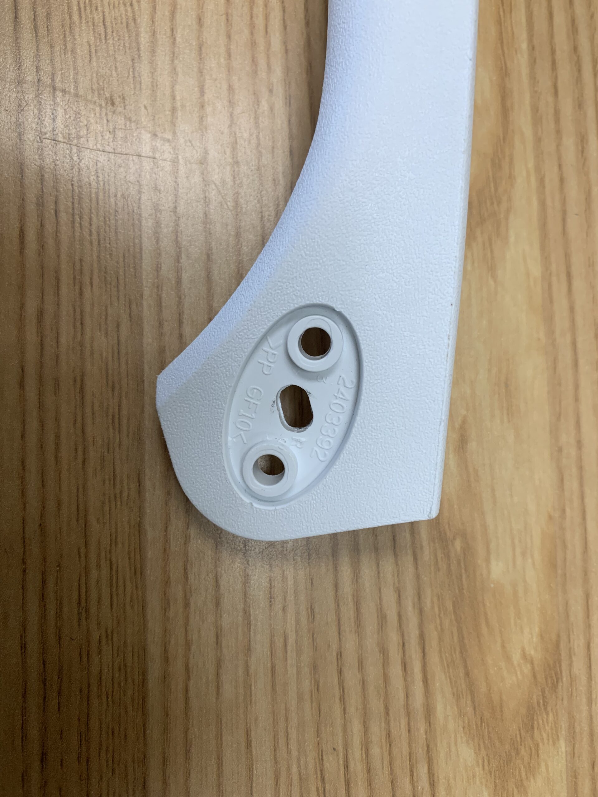 This is a Plastic Handle, white in colour. Doesn’t come with the handle screws. White plastic cover plate for screws, not included. This could be a fridge door handle or the Freezer Handle depending on which way the door swing works on your fridge . The handle will work for both the Fridge and Freezer but the trim on the handle will only line up if you use a 240339201A and 240339201B together on the fridge. If you are questioning if you should order 240339201A or 240339201B please send us an email to parts@provencherappliance.ca with pictures of the handle you are needing to replace and we will be happy to help.