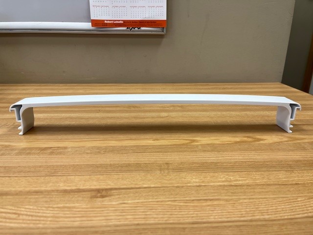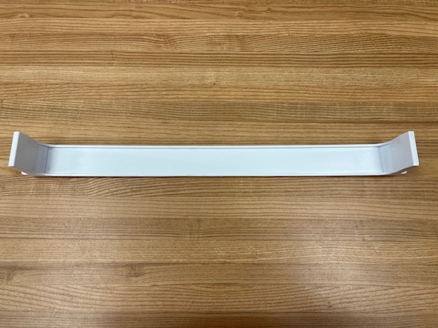 Frigidaire genuine refrigerator Door Shelf Bar. This door shelf bar is white in colour. The door shelf trim snaps into place on the door to hold items on the door shelf. This door bar is normally found in the Freezer section of a fridge. Width 18″ (46 cm)