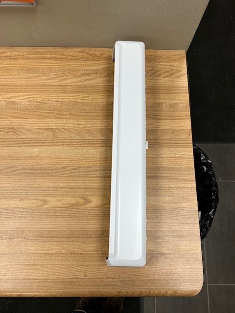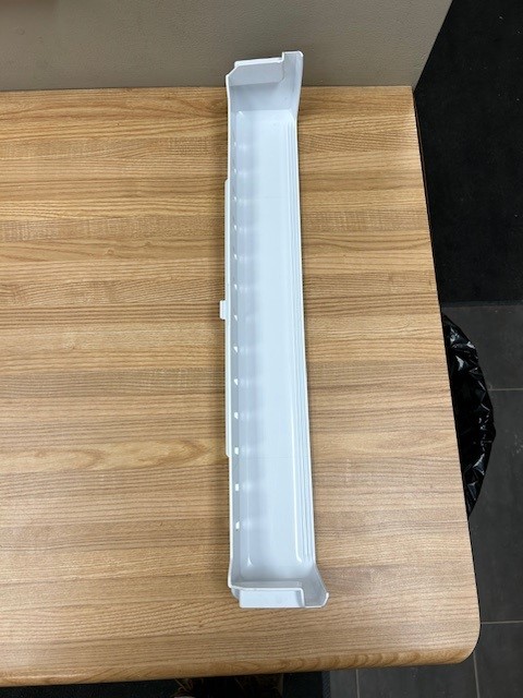 This door shelf is White in colour. The door bar attaches to the inside of the Freezer door. Width 21 1/4″, Depth 3 3/4″, Height 3 1/2″