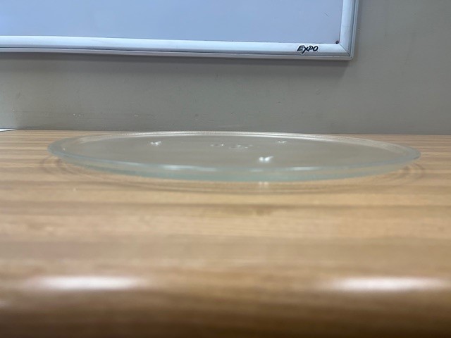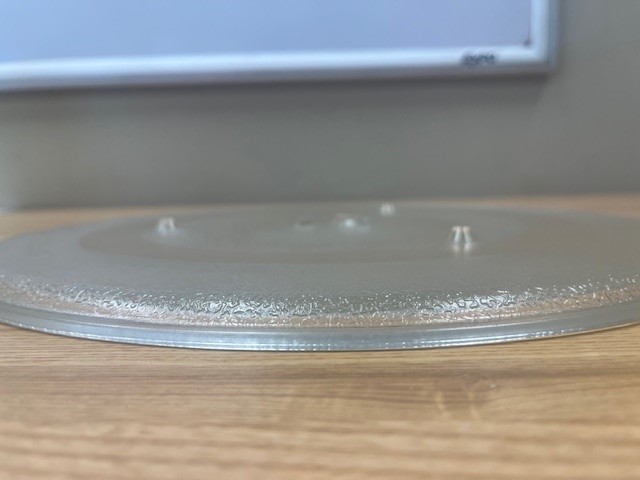 Glass Turn-table located inside of Microwave that rotates in the microwave during heating process.