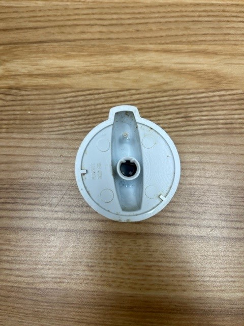 This control knob is white in color with grey details. The burner control knob controls the heat of the surface burner on your range. The appliance this part fits is also referred to as a stove, oven, cooktop, wall oven, or range oven.