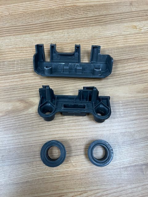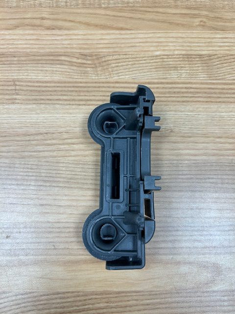 Dark Grey in color. This part is also known as a rack roller, dishrack wheel, or dishrack roller, carrier roller. This Roller wheel attaches to the Lower Dishrack on the right hand side to allow the rack to be moved in and out.