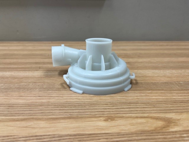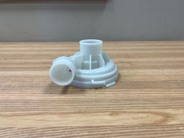 This pump body directs water throughout the dishwasher. Located on the upper part of the machine.