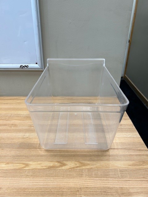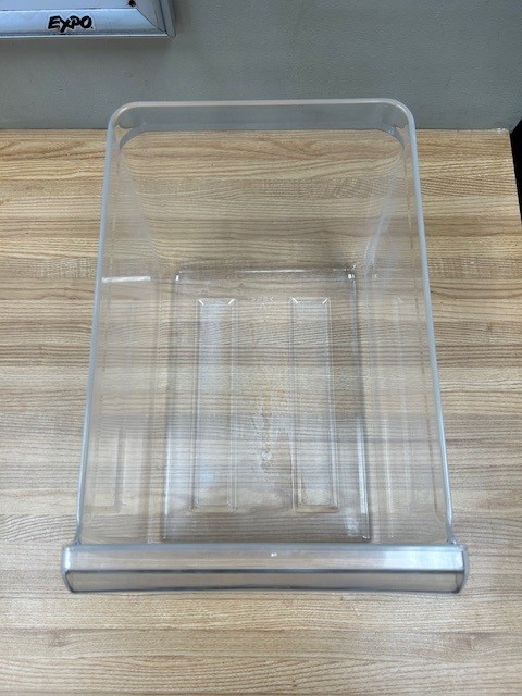 This crisper drawer is clear in colour. The crisper drawer stores fruits and vegetables. This Crisper Drawer is found within a 24″ Fridge
