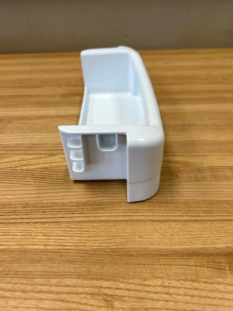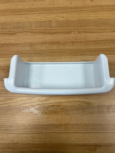 This part is White Door Bin. The door bin attaches to the door and typically holds jars and bottles. Found on the Freezer Door of a side x side fridge.