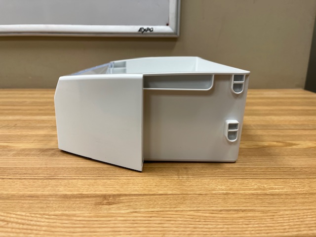 This part is White Door Bin with clear front. The door bin attaches to the refrigerator door and typically holds jars and bottles.