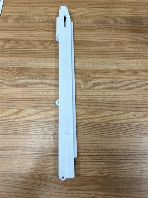 This is the Left side slide rail that attaches to the Glass Shelf. Part comes with 2 screws that are used to attach the rail to the shelf.