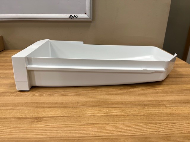 Ice bin found in the Freezer section of a French Door Fridge. The ice maker in the Freezer section of the Fridge would make Ice and dump it into this bin . Also known as an Ice Bucket or Ice Container.