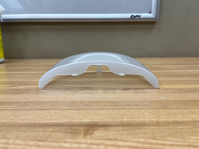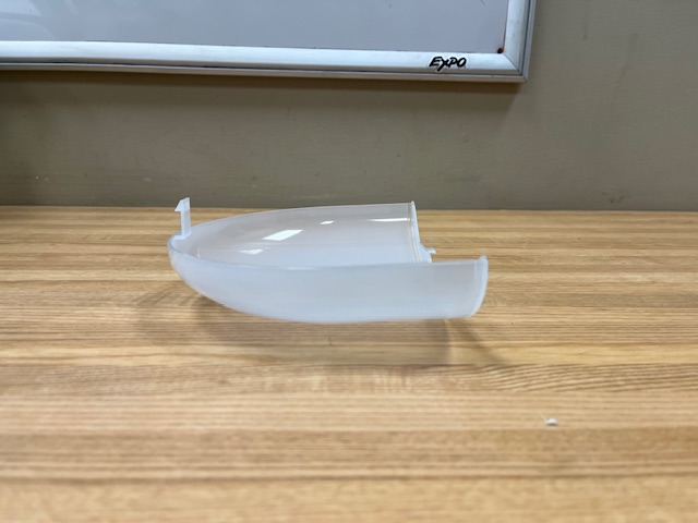 This is a semi-circular piece that serves as a cover to protect the light in a fridge. It is clear (Frosted) in colour.