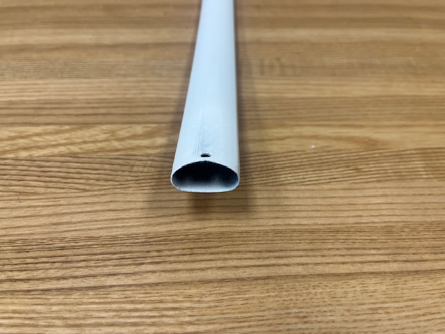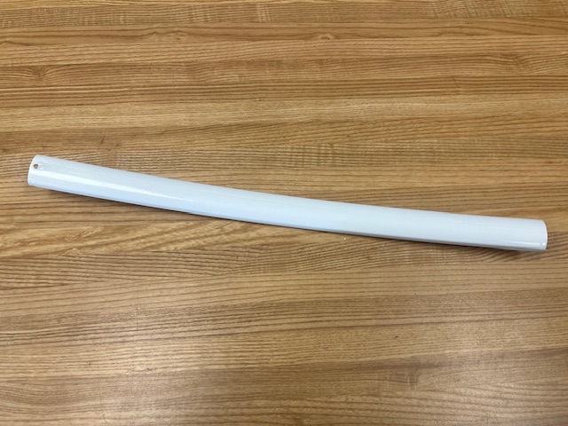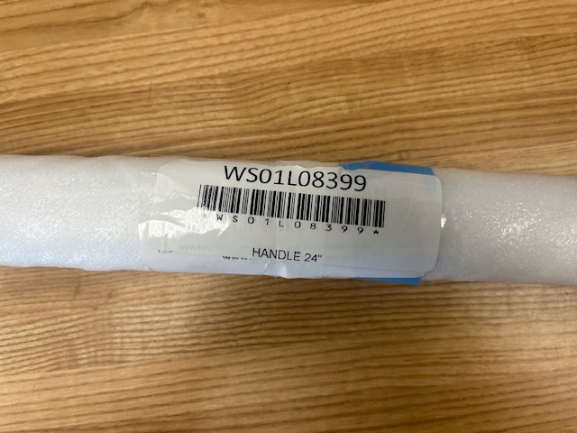 This is a metal handle, white in colour which attaches to the door of a 24″ range.