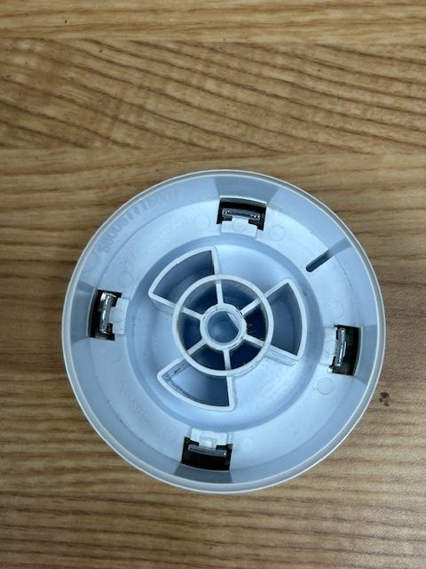 This knob is white in colour with a silver trim. The control knob attaches on the post of a rotary or starter switch on the control panel of the washer.