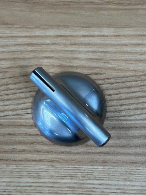 This control knob is plastic and silver in color. The knob turns the burner control that powers the heat of the surface burner on your range.