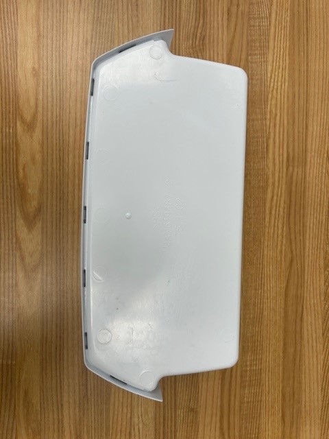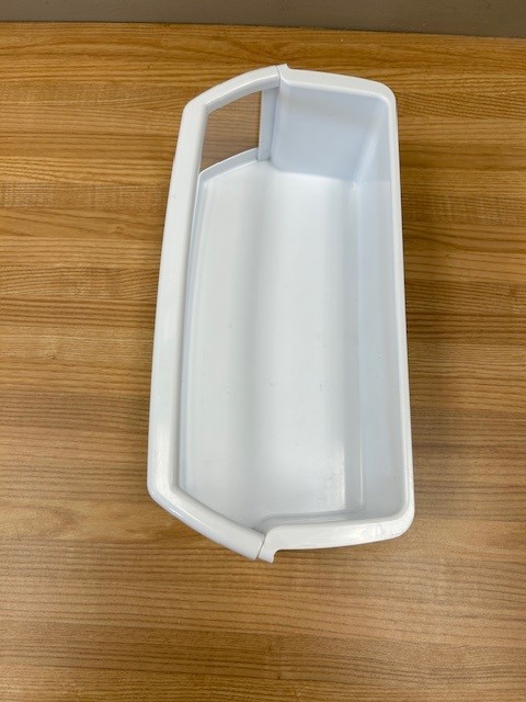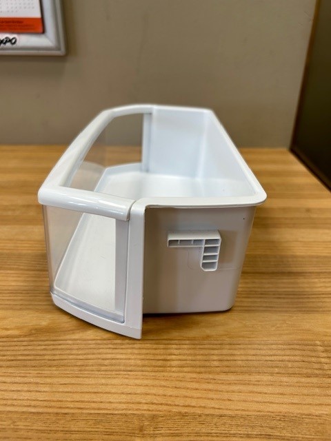 Refrigerator Door Bin. White with Clear front with white trim. Found in 30-33″ French door Fridge about 21-22 cu.ft. in capacity.
