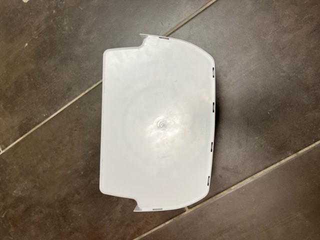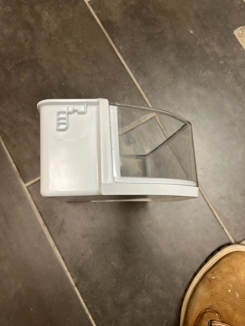 Refrigerator Door Bin. White with Clear front. Found in 30″ French door Fridge about 21-22 cu.ft. in capacity.