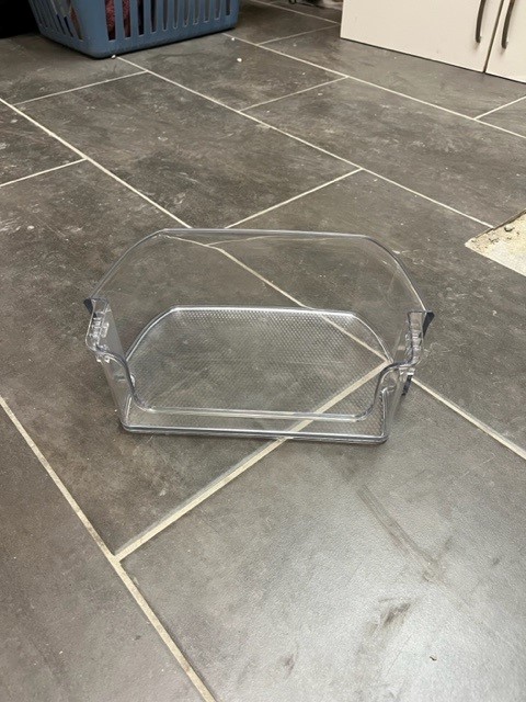Clear Fridge door bin, found in a 30″ French door fridge. Also known as a door basket.