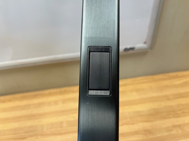 This is a metal door handle for the right side door of a French door fridge. The handle contains the door in door button/switch. Black Matte in colour. Comes with two handle screws (MJB63190001).