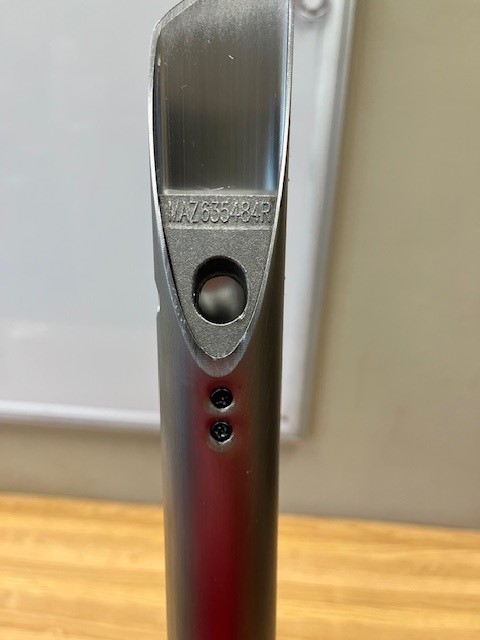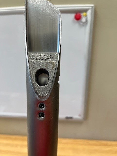This is a Metal Handle, Stainless/Grey in colour which attaches to the Freezer door of a French door Fridge. Handle includes two handle screws (MJB63190001).
