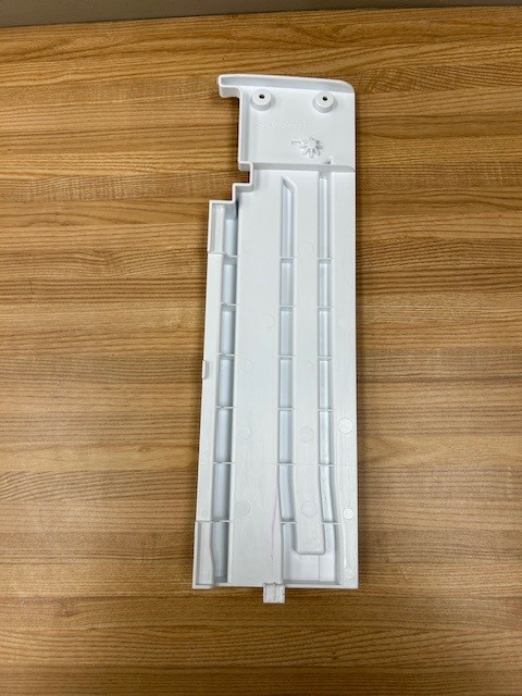 This is the left side Slide rail that attaches to the Bottom left side wall of the fridge section. The Pantry Drawer Rail holds the Large pantry drawer in place at the bottom of the Fridge section and allows it to roll in and out.