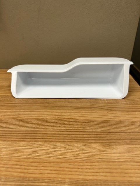 White small door bin (Half Bin), found in a 30″ French door fridge. It is the Bottom bin on the Left side door.