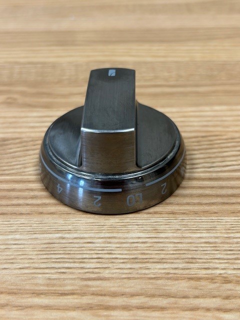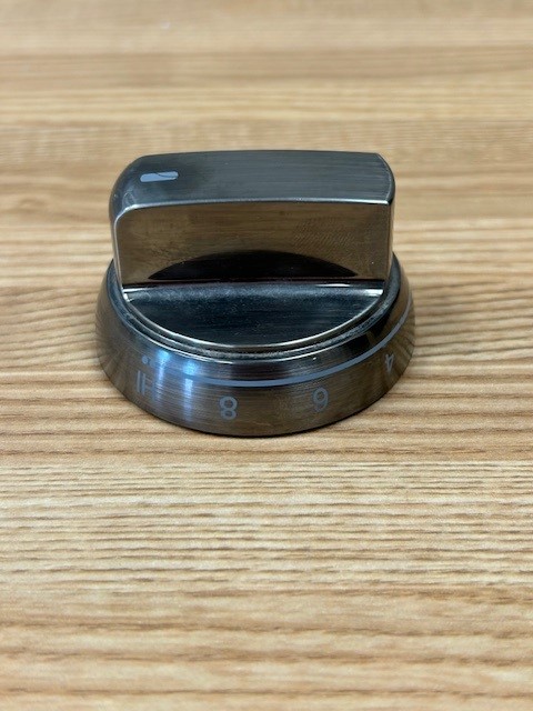 This control knob is Black Stainless in colour and is made of Metal. The knob turns the burner control that powers the heat of the Dual element on your range. These Knobs are found on a Black Stainless Steel Slide in range.