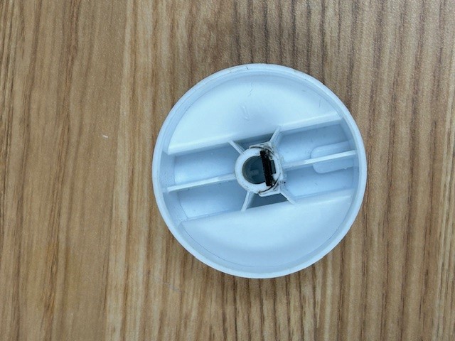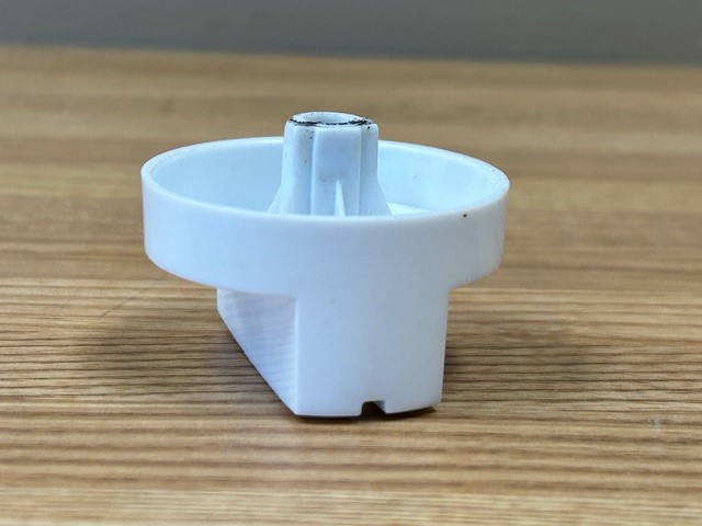 This control knob is white in colour . The knob turns the burner control that powers the heat of the surface burner on your range.