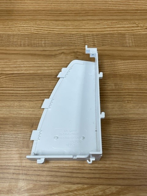 White Plastic End cap from on the Left Hand side of the Washer or Dryer Console.