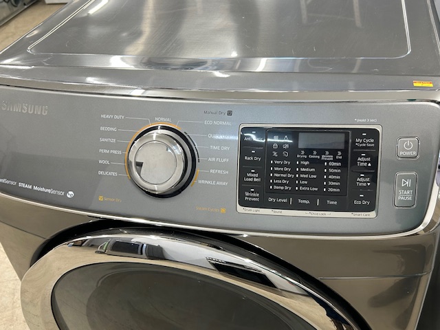 Reconditioned Electric Steam Dryer, 27″ Width, 7.5 cu. ft. Capacity, Steam Clean, 5 Temperature Settings, Stackable, Steel Drum