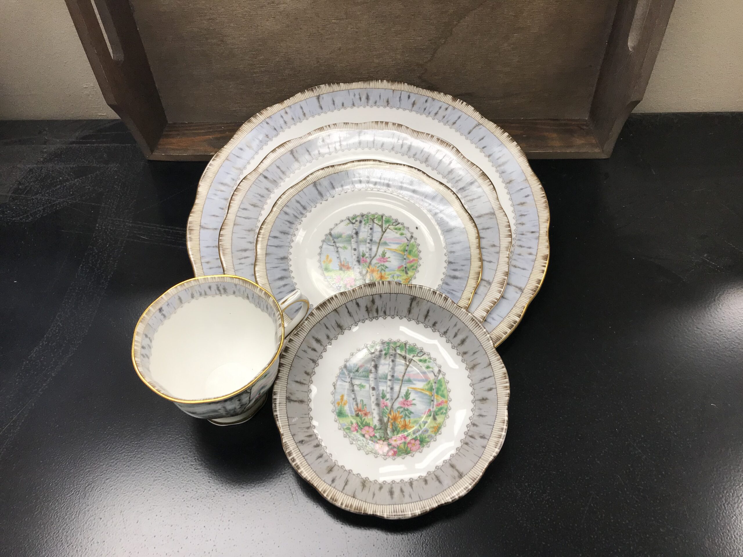 The Silver Birch china pattern was released in the vintage time of the 1940s. The pattern carries the charm of a Lakeland scene, the setting was taken from Canada.