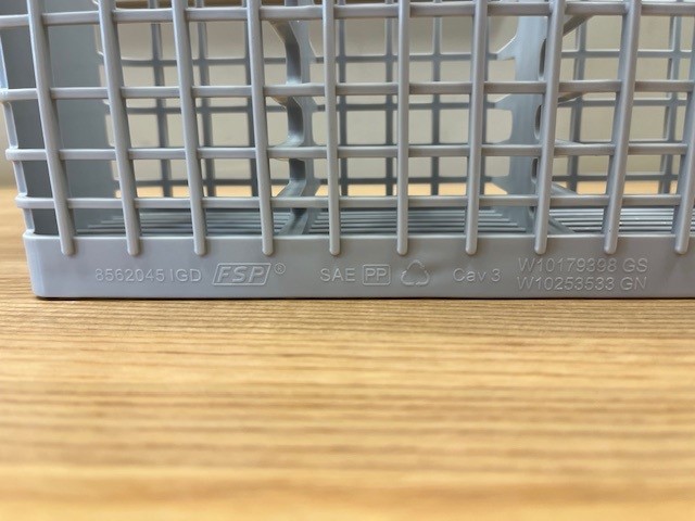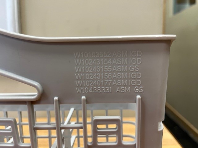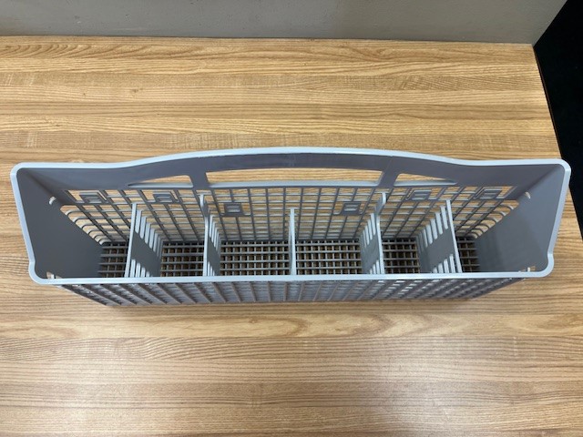 Description: Light Grey in color.  Dimensions (Approx.)- Width: 19 1/4″   depth: 3 1/2″   Height: 9″ . This part is also known as a silverware basket. Sits in the Lower Dishrack and holds utensils for washing.