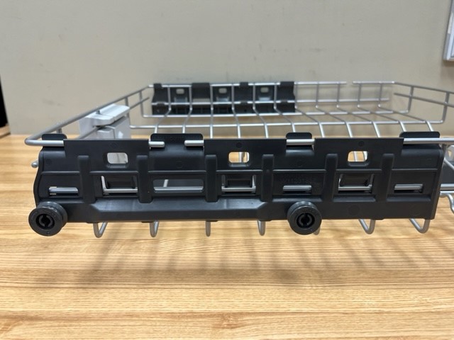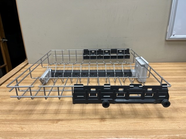 This is the Top (Upper) Rack in the dishwasher which contains 3 racks, also known as the 3rd level rack. Found in a 24″ dishwasher. The following parts are included with the Rack: