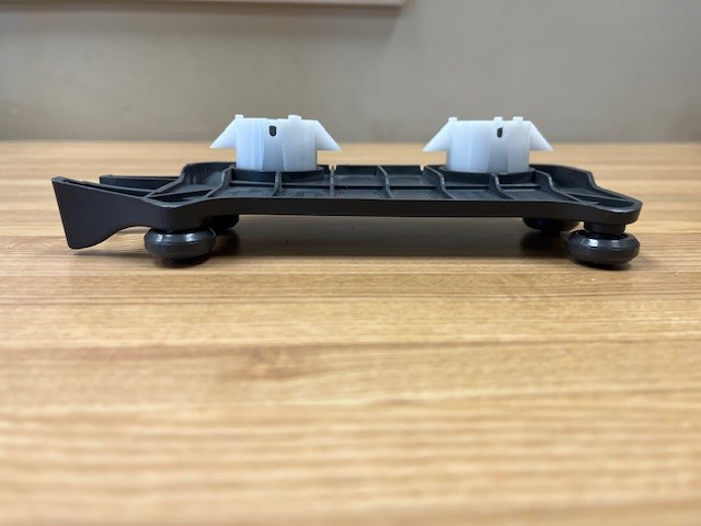 The track assembly mounts on the Left side of tub and allows the dishrack to roll smoothly for easy access of dishes. Dark Grey in color. Also known as a Tub Mount.