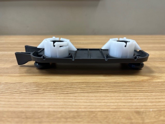 The track assembly mounts on the Right side of tub and allows the dishrack to roll smoothly for easy access of dishes. Dark Grey in color. Also known as a Tub Mount.