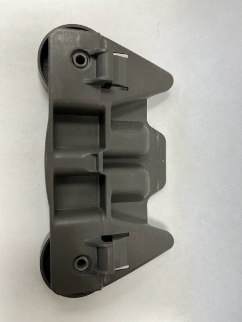 Dark Grey in color. Dimensions (Approx.)- Width:5 1/2″ Length: 2 3/4″ Height: 1″ . This part is also known as a rack roller, dishrack wheel, or dishrack roller. This Roller wheel attaches to the Upper/Lower Dishrack to allow the rack to be moved in and out.
