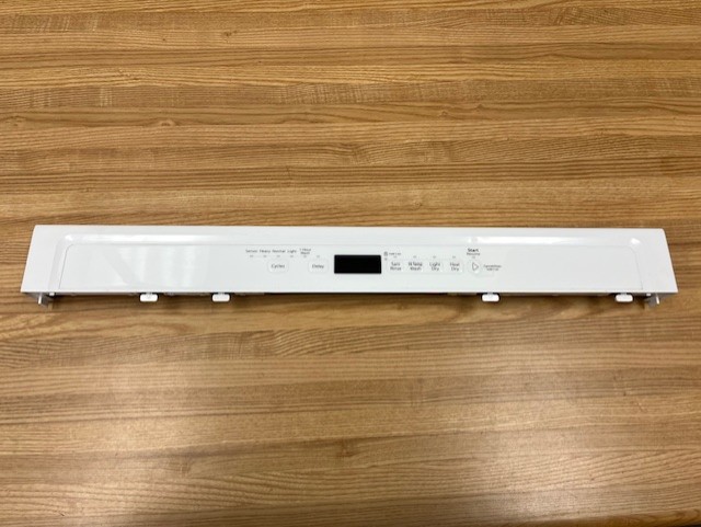 The User Interface control panel allows user to select the functions of the dishwasher, such as washing, draining and drying. This specific part is all white. The all white variant of this part (this variant) is no longer available to purchase new.