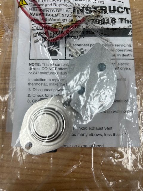 This kit includes 1 high-limit thermostat with a limit at 250°F, 1 thermal cut-off fuse with a limit at 309°F, and the wiring hardware. The thermal limiter shuts off the motor if the dryer overheats.
