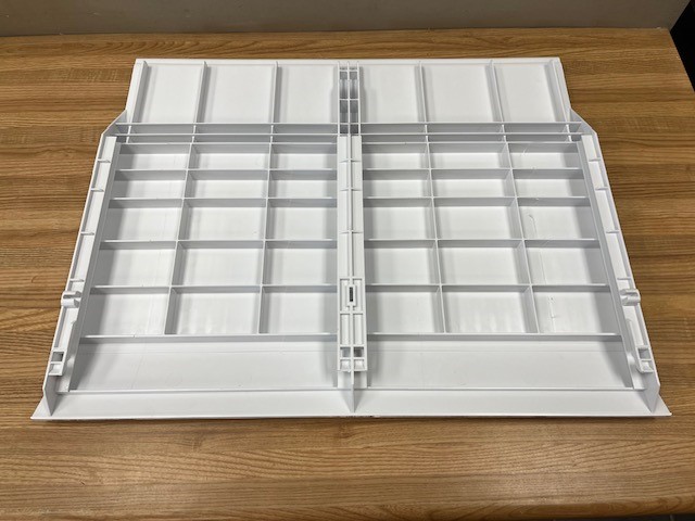 This is the frame that is above the Crisper Drawer in a Refrigerator. The Cover will support the Crisper Drawers. The Frame is Plastic and is white in color.