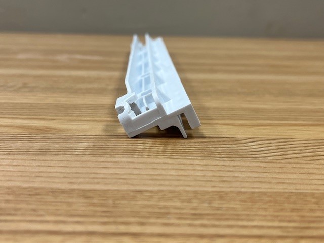 This is the Right side Slide rail that attaches to the Crisper cover and holds the Crisper Drawer in place.