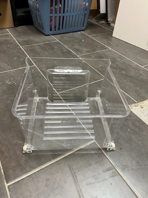 Clear Crisper drawer. Also known as Drawer, Fruit and Vegetable trays, Vegetable drawer.